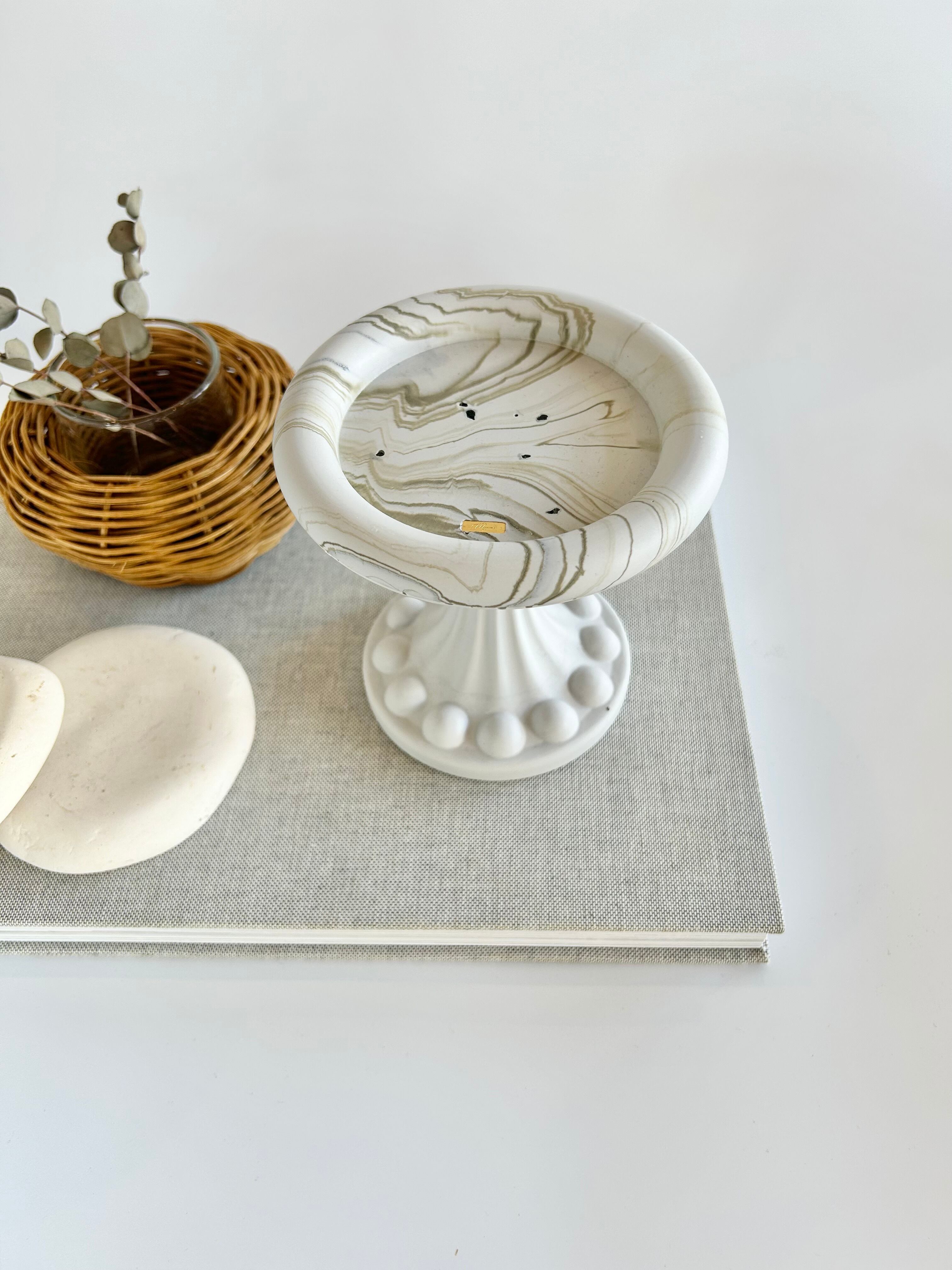 アースカラーを基調としたカラーで、スタイリッシュなシルエットの台座です。