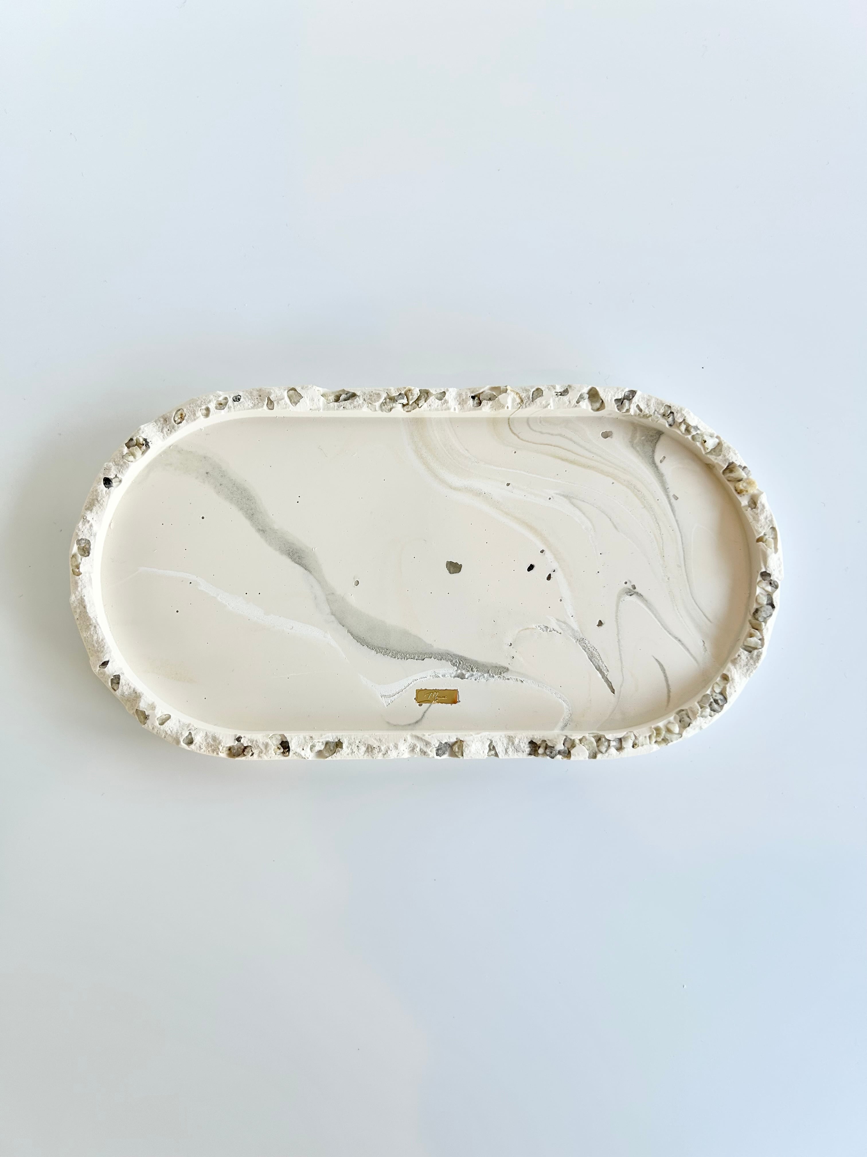 ゴツゴツとしたフチと、偶然生まれる模様が空間に静かなアクセントを添えます。