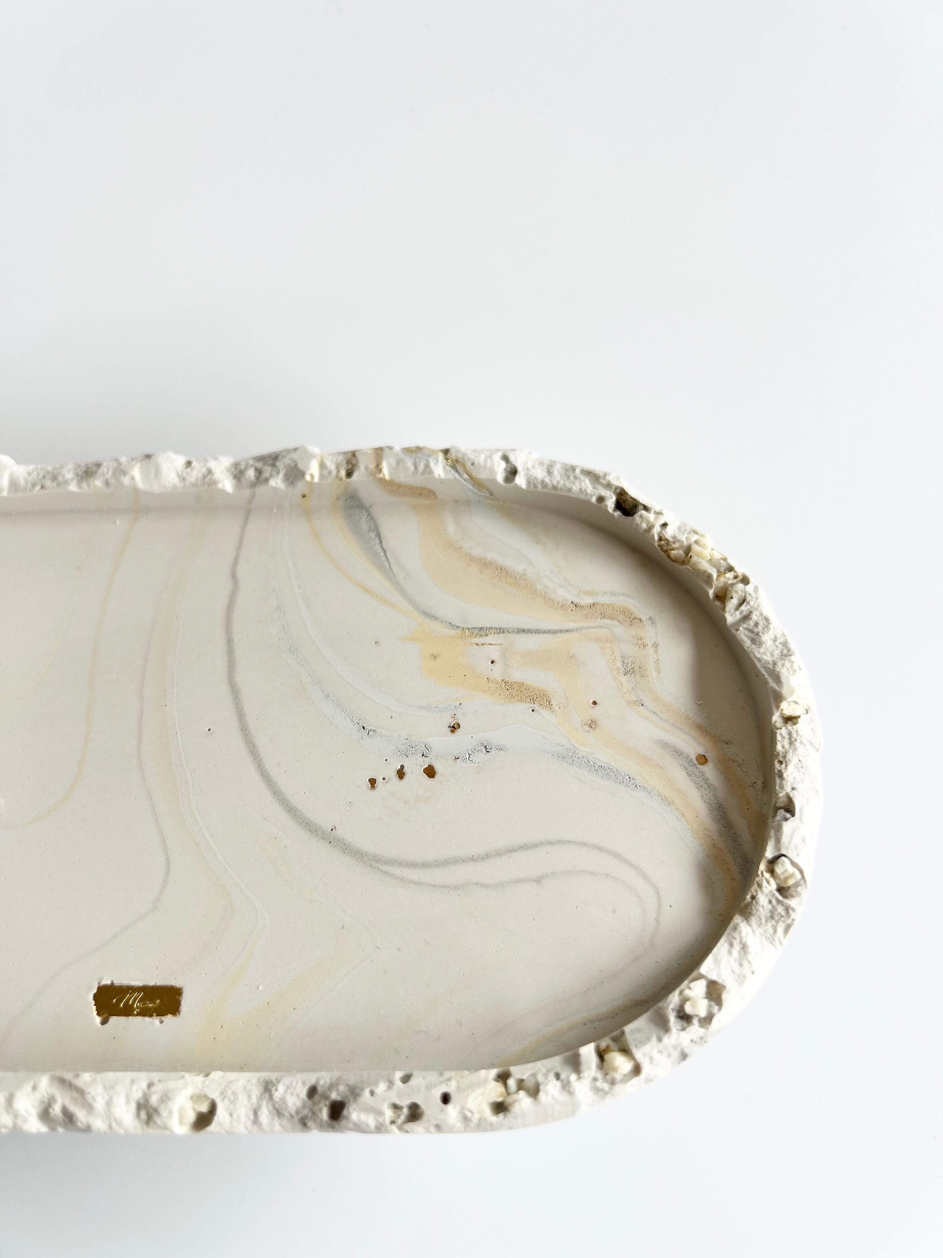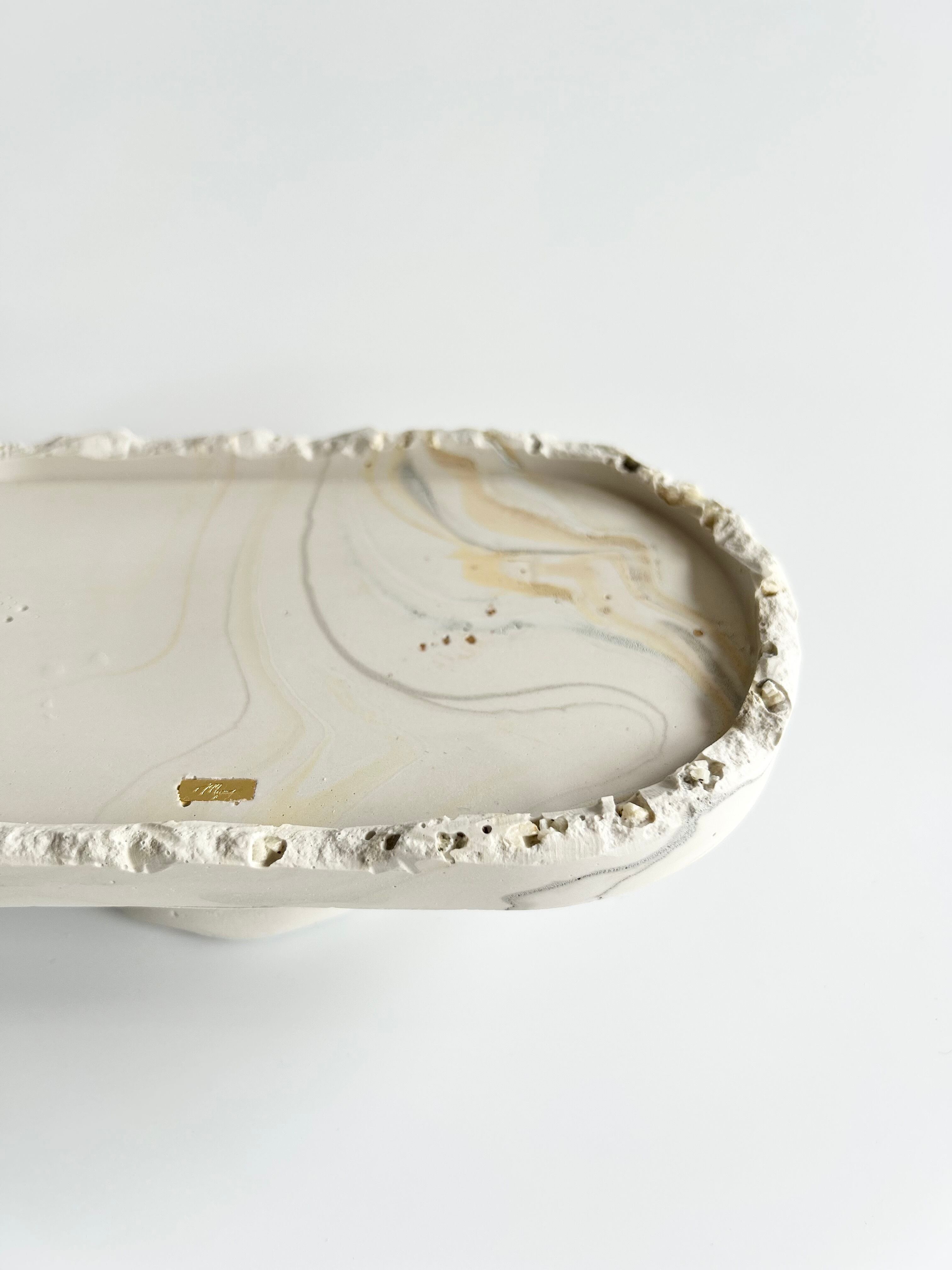 地層の断面のような、存在感のあるフォルムのトレーに高さを付けました。