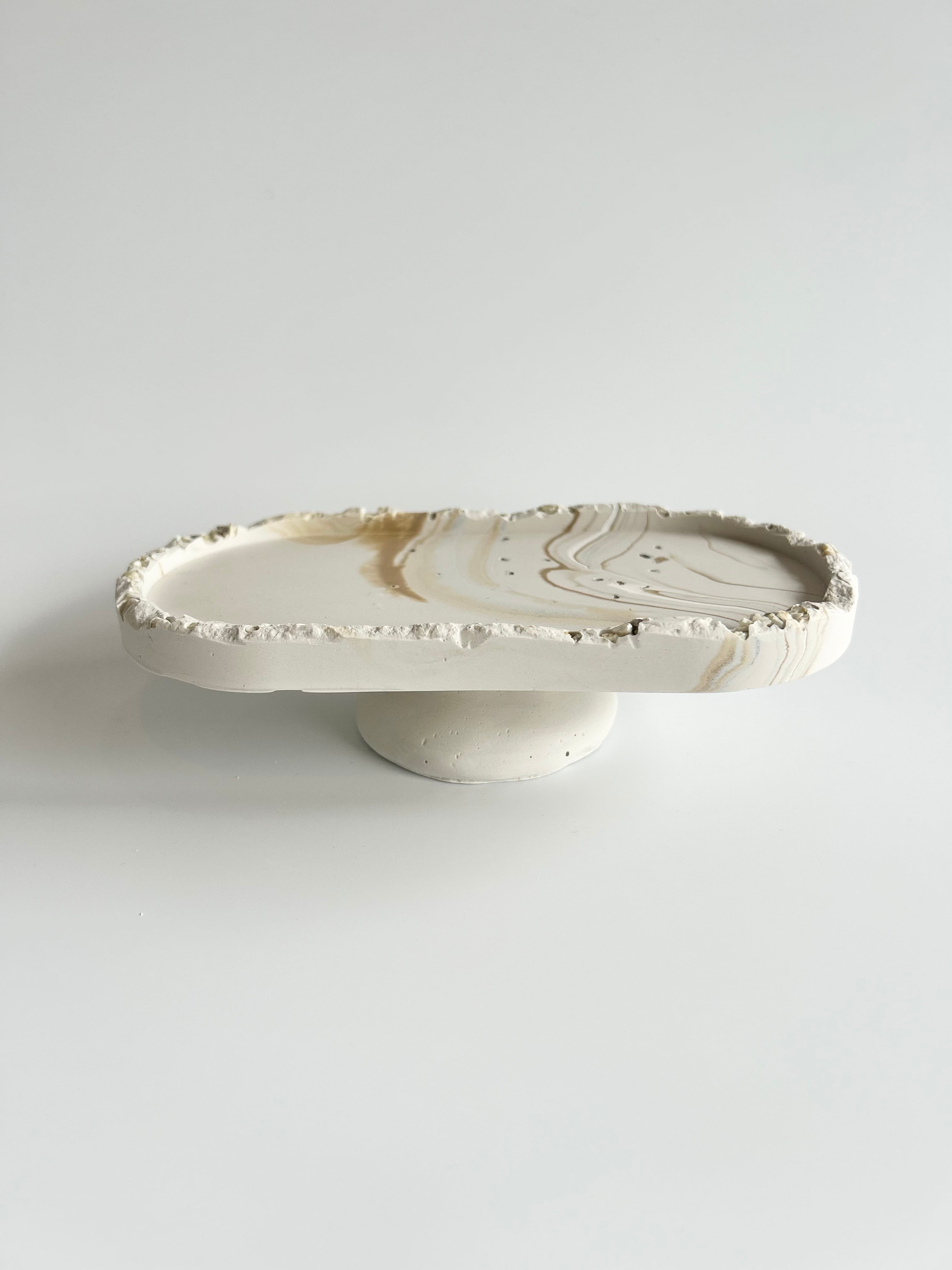 地層の断面のような、存在感のあるフォルムのトレーに高さを付けました。