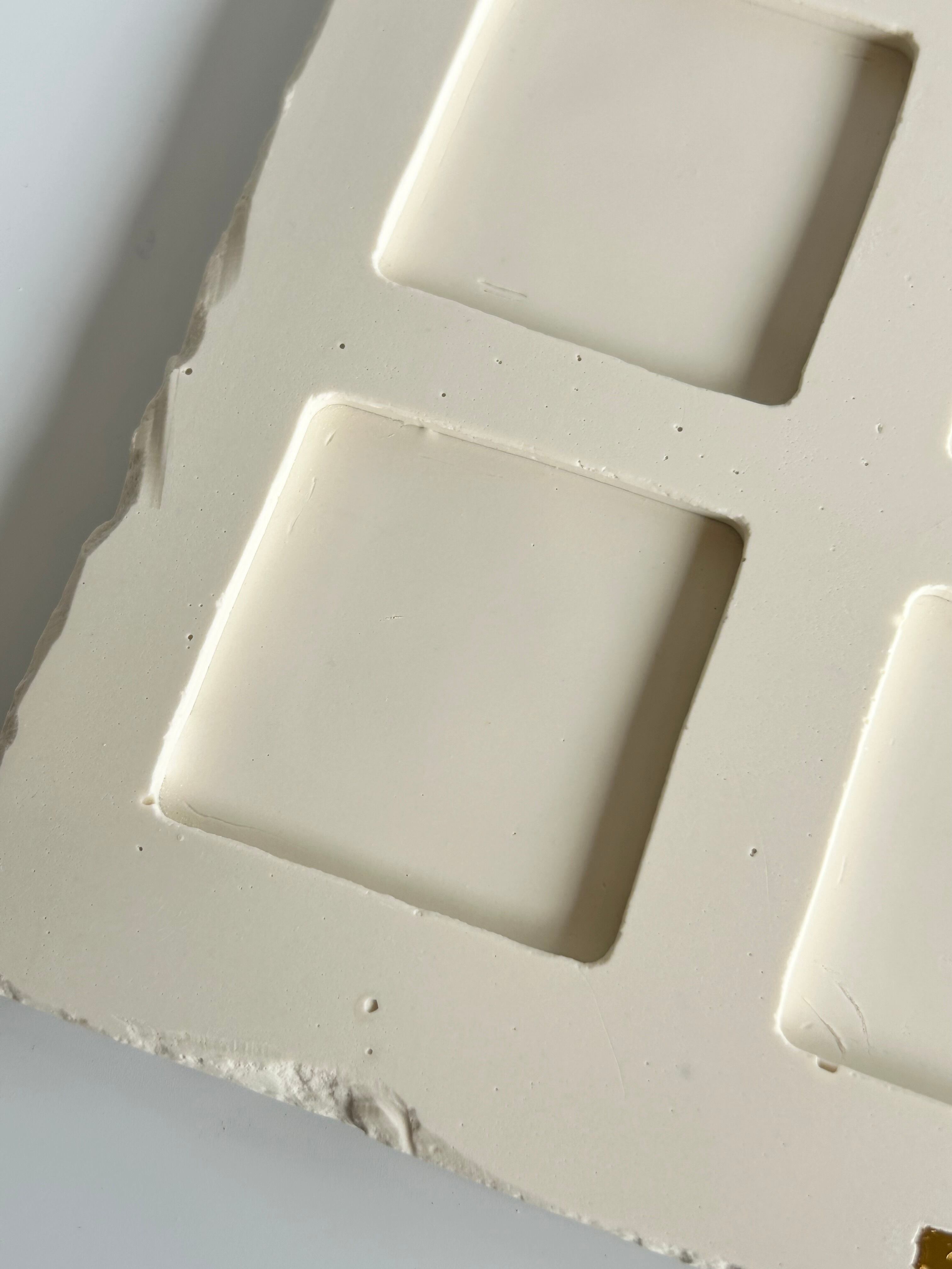 片面は、6つのスクエアが整然と並ぶ立体デザイン。