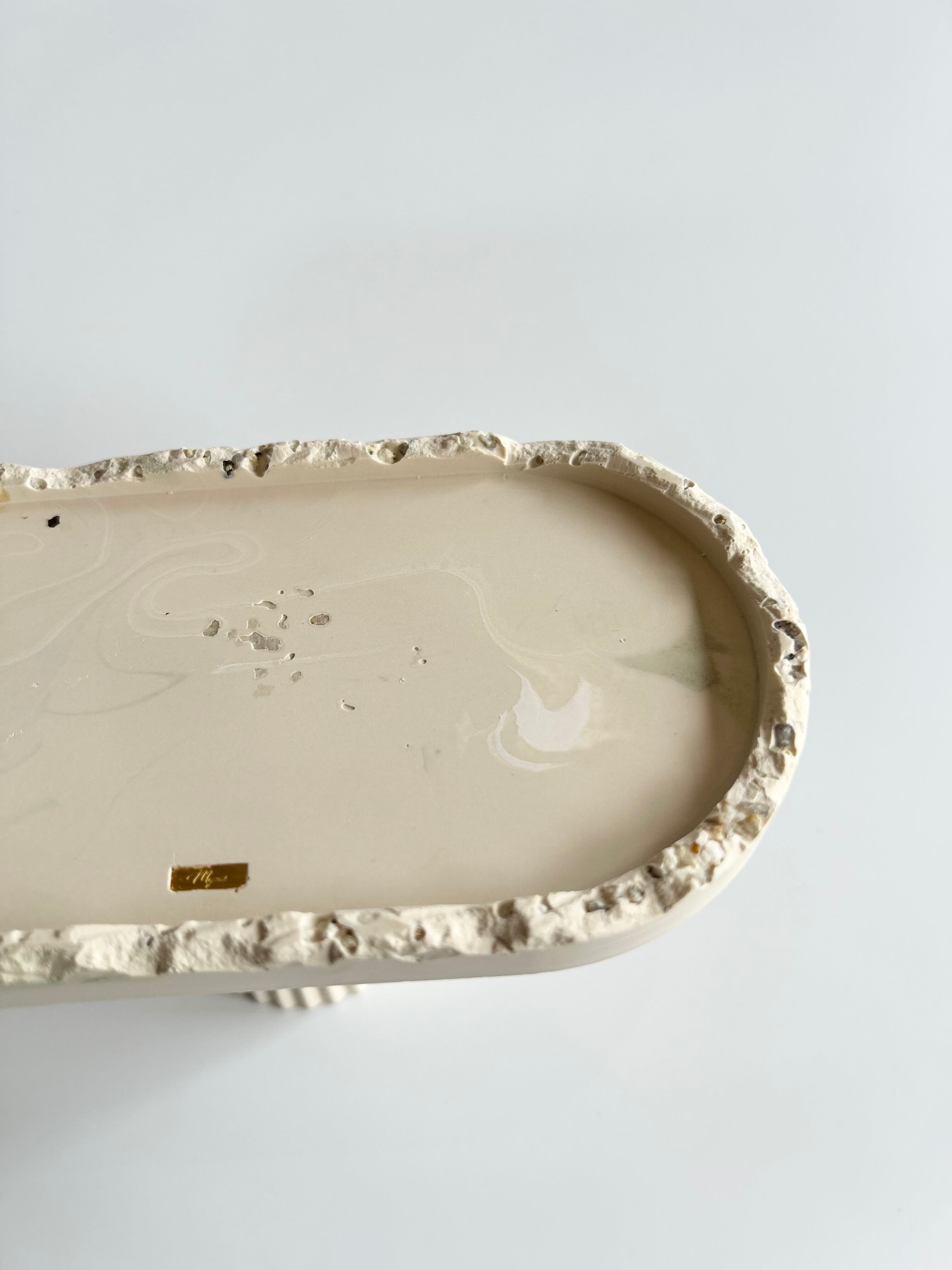 地層の断面のような、存在感のあるフォルムのトレーに高さを付けました。