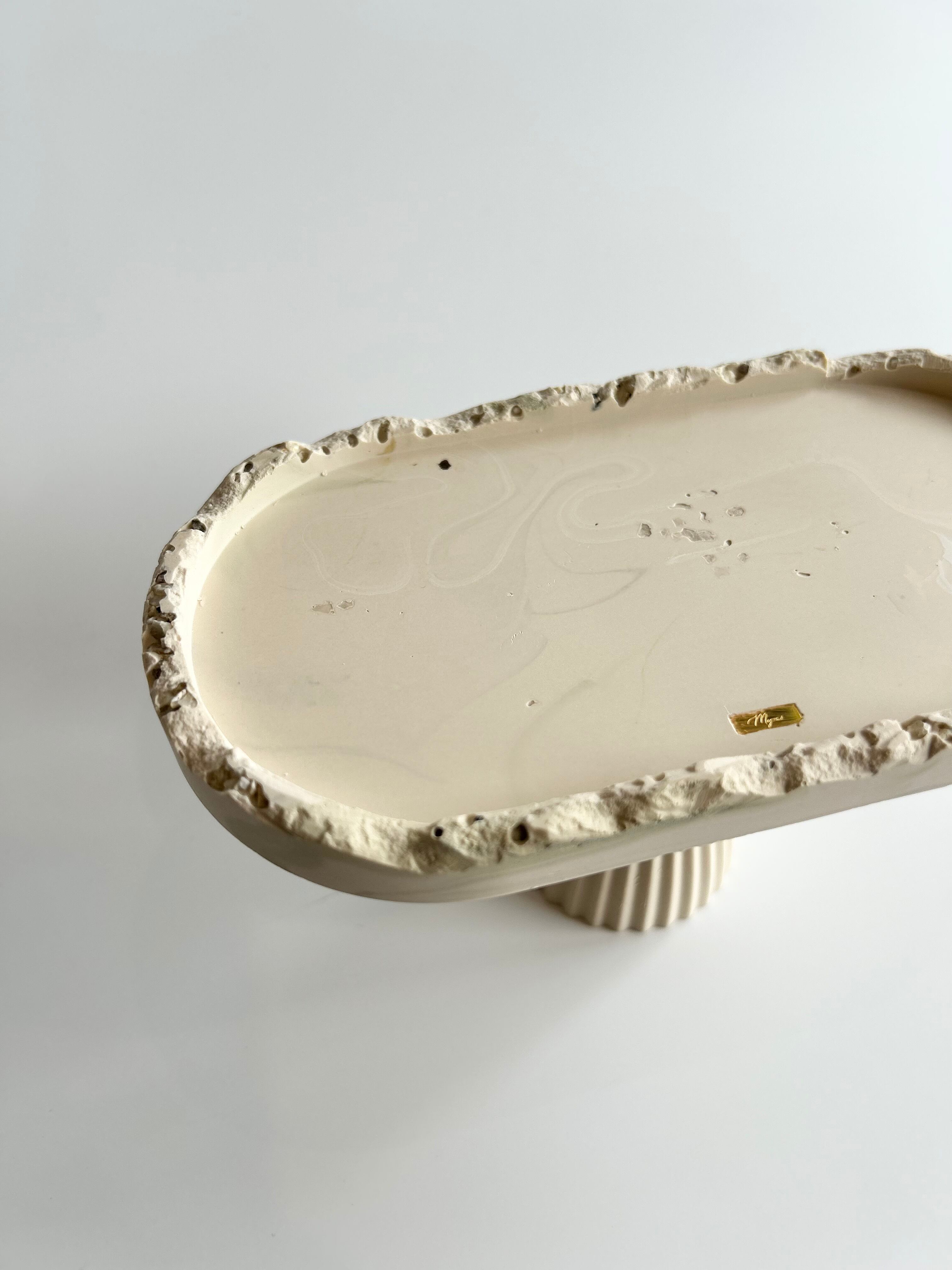 【ベージュ/台座・高】ゴツゴツフチのオーバルプレート/3-2-65