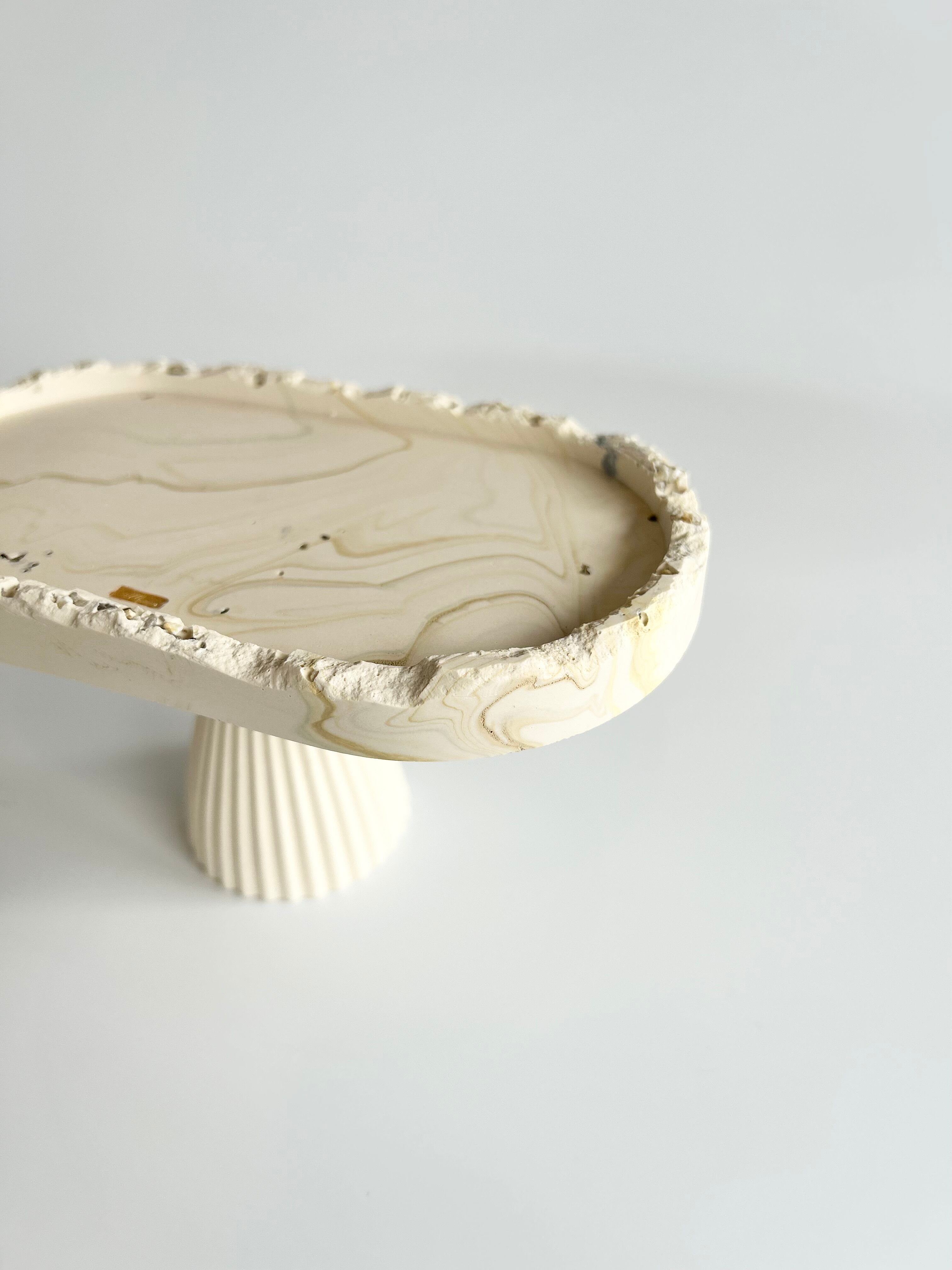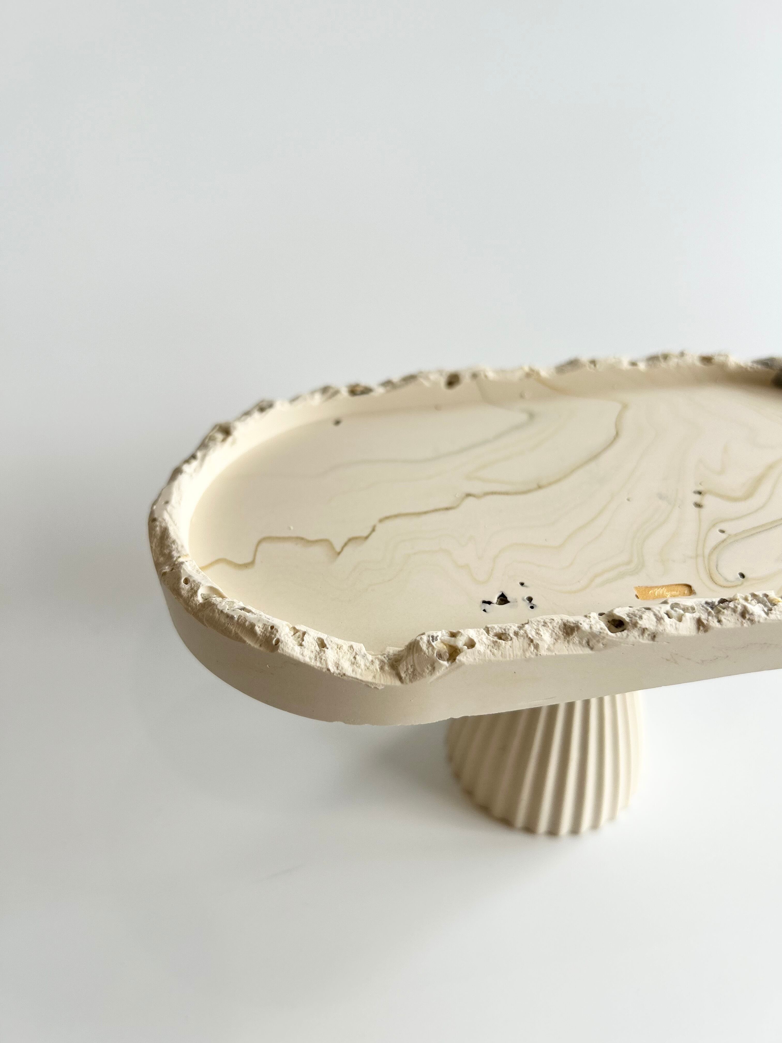 地層の断面のような、存在感のあるフォルムのトレーに高さを付けました。