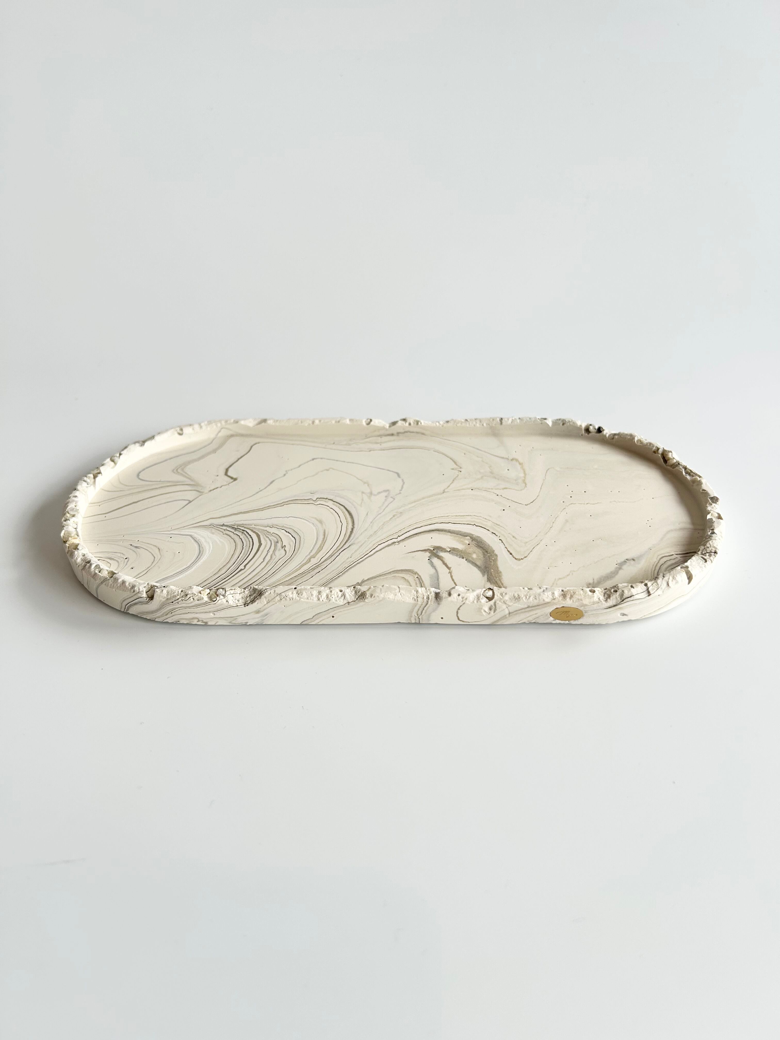 【Lサイズ・クリーム】ゴツゴツフチのオーバルプレート/1-4-71